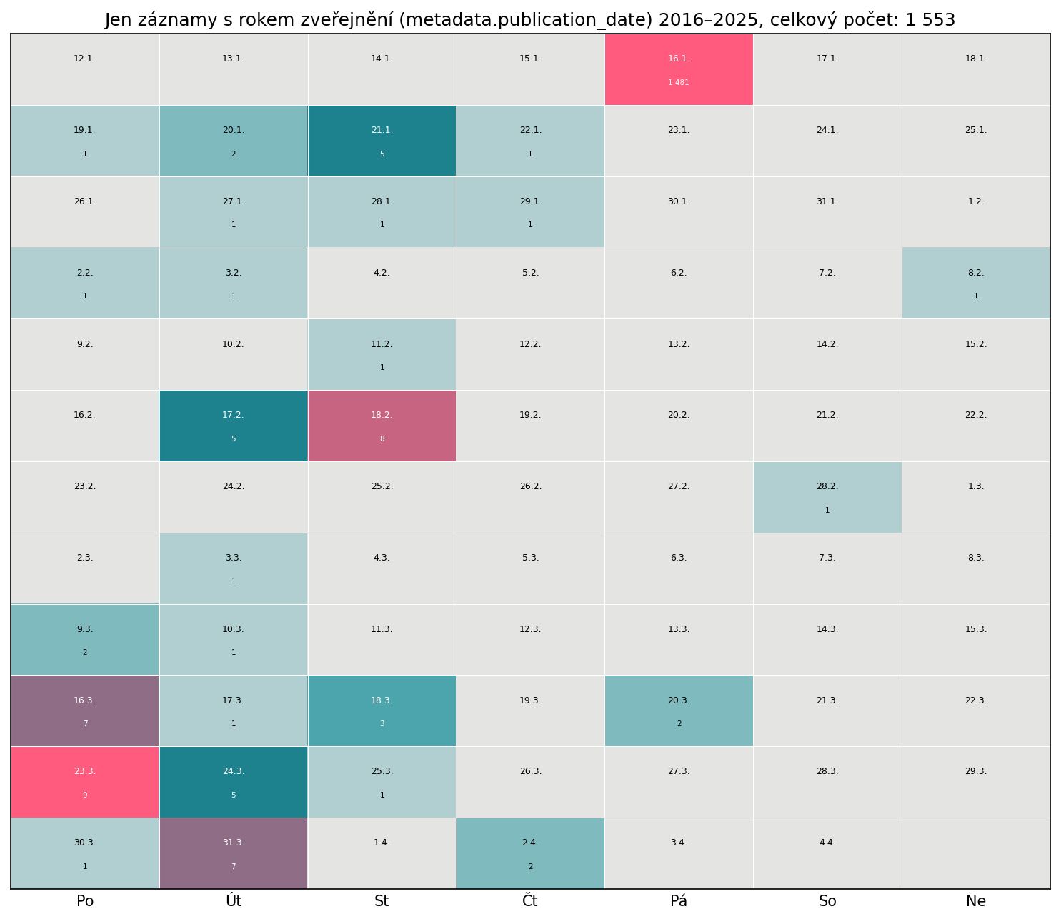 Jen záznamy s rokem zveřejnění (metadata.publication_date) 2016–2025, celkový počet: 1 553